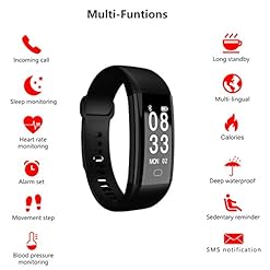 MULTIFUNCTION UPGRADED FITNESS TRACKER: This smart bracelet can track your heart rate Blood pressure and all-day activities. It can display Date and Time ,Step Counting,calorie burnt, distance. More activity functions are added: walking, running, treadmill, hiking, fitness, basketball, badminton,swimming.24-hour activity time line.