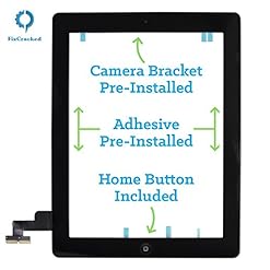 FixCracked Screen replacement for iPad 2, Front Touch Digitizer Assembly Replacement include Home Button +Camera Holder + Adhesive pre-installed+Middle Frame Bezel+WIFI Antenna Cable (Black)