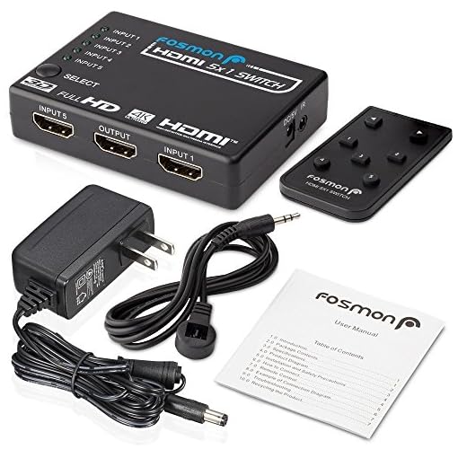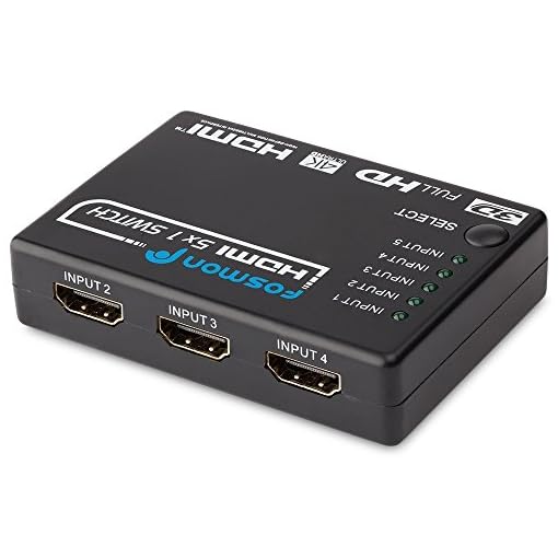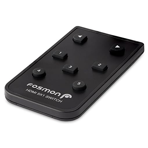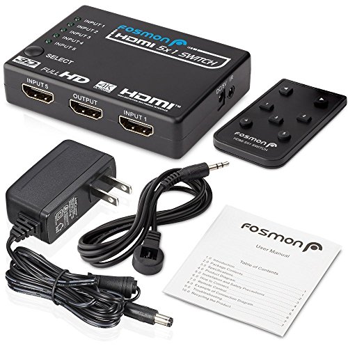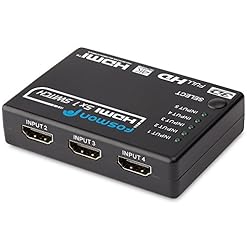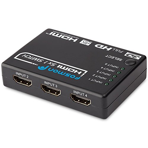 Fosmon 5×1 Intelligent 5-Port HDMI Switch | Switcher with IR Remote and AC Adapter Supports 3D