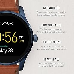 Introducing our slimmest smartwatch thus far: Q Marshal is our newest digital display watch that connects seamlessly to your phone. Strapped in brown leather, the tech-savvy dial with touchscreen functionality includes customizable faces. This handsome timepiece tracks the whole thing from day by day steps to calories. Notifications alert you of incoming calls and texts. Use the built-in microphone and speaker to do quite a few tasks on your Android smartwatch the use of just your voice. Stay charged for as much as 1 day (in response to usage) with the wireless conductive magnetic charger. From customizable watch faces to interchangeable straps, it’s easy to tell time the smarter way with Q Marshal.