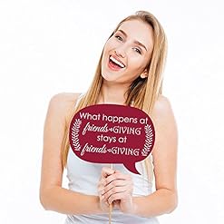 FRIENDSGIVING DECORATIONS: Many fun how one can use these cute photo booth props! Use as intended and take party photos to share; Add them to vases and floral arrangements as a fun Friendsgiving centerpiece; Accent your Friendsgiving candy buffet by displaying them in apothecary candy jars; Adhere as direction arrows to walls and your guests to the Thanksgiving party!