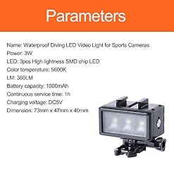 Compact & lightweight: Portable video light; Size: 7.3×4.7x4cm/2.8×1.8×1.6 Inch; Weight: 150g; Waterproof up to 40M.
