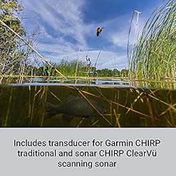 Includes transducer for Garmin CHIRP traditional sonar plus CHIRP ClearVü scanning sonar with transom and trolling motor mounts
