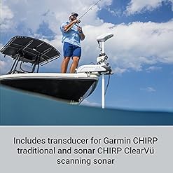 Includes transducer for Garmin CHIRP traditional sonar plus CHIRP ClearVü scanning sonar with transom and trolling motor mounts