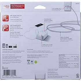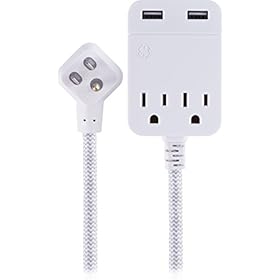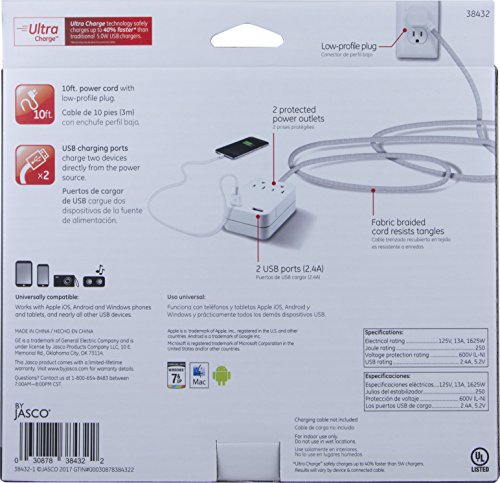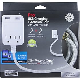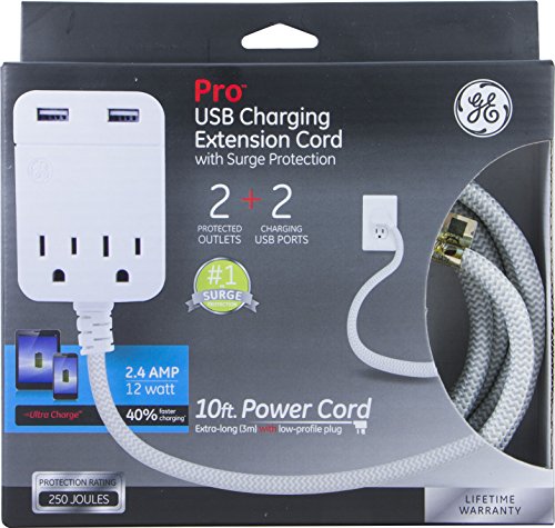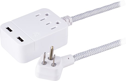 GE Pro designer USB extension cord features 2 outlets and 2 USB charging ports
