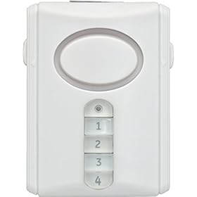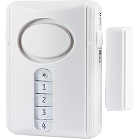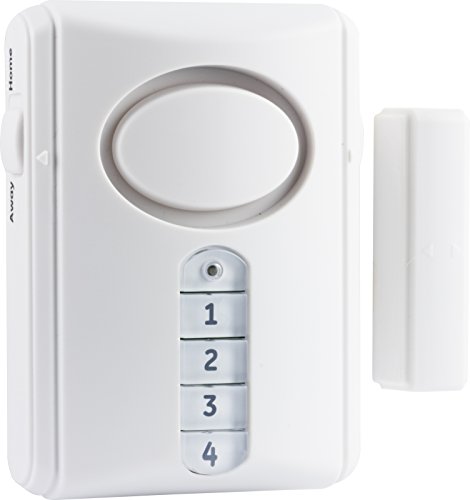 Deluxe door alarm uses four-digit keypad to set security code for arming/disarming. Away mode offers a 45-second exit delay and a 30-second entry, instant alarm when in Home mode.
