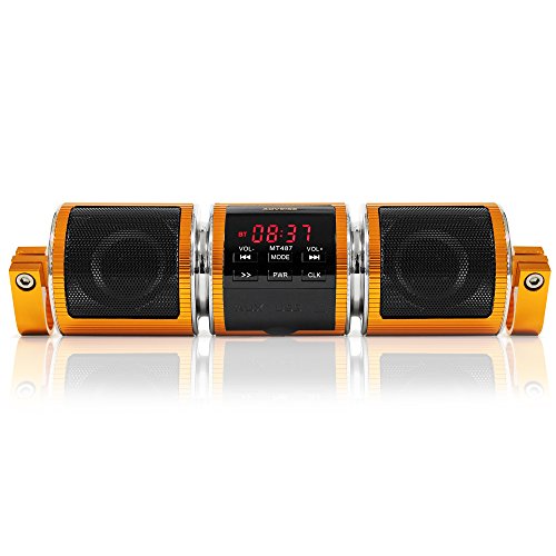 Superb Crystal Sound Quality. Advanced Waterproof Design. Digital Display. Golden Color Stereo Unit Built with High Quality Aluminum Material. Perfect for Motorcycle ATV UTV Electric Bike Marine Boat. Great for outdoor use.