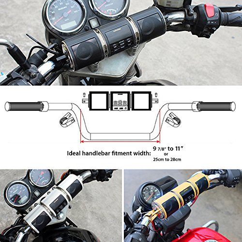 GoldenHawk Waterproof Bluetooth Wireless Motorcycle Stereo Speakers 7/8-1.25 in. Handlebar Mount MP3 Music Player Audio Amplifier System Scooter Bike ATV UTV, USB, FM Radio
