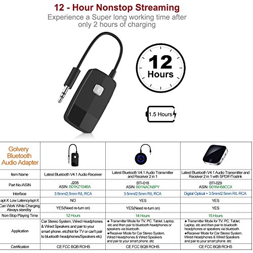2. If you want bluetooth transmitter,please search Golvery Bluetooth Transmitter, they are on hot sales.