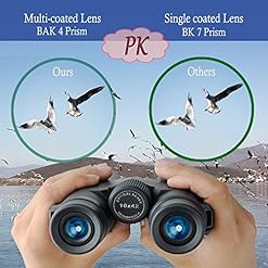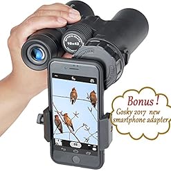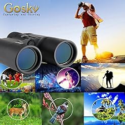 The Gosky 10X42 compact roof prism binocular, equipped with FMC(fully multi-coated) green film lens and clear prism, 10X power and solid construction, is a great gadget which enable you to observe target in distant world with more true-to-life details.