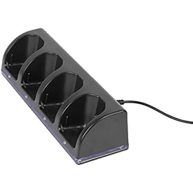 Overview: This charging dock is designed to charge as much as 4 Wii remotes concurrently fast and safely. Just replace the back panel of Wii remote, dock the remote and plug it into any USB port to charge, because of this young kids will don’t have any problem recharge themselves. With anti-slip feet at bottom, it sits steady on flat surfaces whether one or four remotes are in charging. Specifications: Input: DC 5V Output: DC 2.8V 280mA per slot Battery: 4 pcs 2.4V 2800mAh Ni-MH batteries Charging cable length: 120cm/3.9ft Size of dock: 19.2 x 5.5 x 4.7cm/7.6″×2.2″×1.9″ (L×W×H) Weight of dock: 118g/4.17oz Weight of battery: 40g/1.4oz x 4 Package Size: 20.2 x 10 x 5.5cm/7.95″×3.94″×2.17″ (L×W×H) Package Weight: 356g/0.78lbs Color: black Package Contents: 1 × 4 Ni-MH Rechargeable Battery Packs 1 × DC-USB Charging Cable 1 × Dual Remote Keep watch over Charging Dock