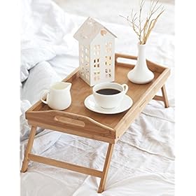 Greenco Bamboo Foldable Breakfast Table, Laptop Desk, Bed Table, Serving Tray