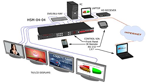 4×4 HDMI matrix switch with RS232 and IP Keep an eye on The Hall Research HSM-I-04-04 is a 4×4 HDMI matrix switch with RS232 and IP Keep an eye on. It supports HDCP, deep color, multi-channel digital audio (up to 7.1 channels), and may be used with any combination of DVI (PC) or HDMI (HDTV) sources and displays. The HSM-I-04-04 4×4 HDMI matrix switch uses silicon image chipsets capable of color depth conversion independently for each output. This assures that the highest numbers of colors imaginable are displayed on each output. In other words, if some outputs are connected to displays that only give a boost to HDMI 1.2 and others to 1.3, the unit will report as supporting HDMI 1.3 to each input source to be able to receive the deepest color depth imaginable. EDID management, fast switching, low profile (only 1 RU), PRESET Save and Recall functions, IR remote, and comprehensive front panel controls, make the Genesis Digital matrices ideal for home theater, conference room, multimedia presentation systems, and other similar settings. IP Keep an eye on from any PC or smartphone Keep an eye on and manage your video switch from anywhere in the building the usage of your iPhone or Android phone. The IP (LAN) port includes a Smart built-in web server with software to Keep an eye on the switch from any modern browser. The embedded HSM IP Manager first reads the display area of your browser and then renders the web page optimized for the device without the wish to install an app. Just use a shortcut to the IP address and you’re going to not only have the ability to make ties or recall presets, but can also assign custom names for each input, output, and preset pattern. It supports multiple simultaneous users from any device including PC, smartphone, or tablet. Try the HSM IP manager simulator The HSM IP Manager Simulator allows you to check out the software and see the features and navigation with some limited functionality. Try the simulator by scanning the QR Code with your smartphone