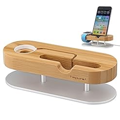 Hapurs Apple Watch Stand Iwatch Series 2 Stand Aluminum Alloy and Bamboo Wood Build Charging Dock Charge Station Stock Cradle Holder for Apple Watch Both 38mm and 42mm & iPhone 7/7 plus 6/6s plus 5S 5