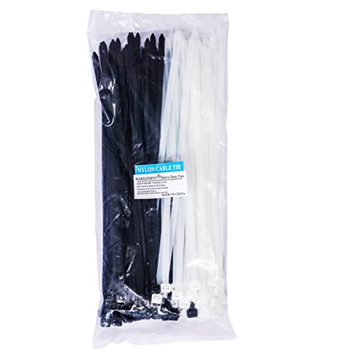 Value pack of 100-12 inch nylon plastic ties cable zip ties in a clear bag,Package Details: 50 pcs white,50 pcs black,L: 12inch,W: 7mm/0.28inch,Nylon Material type: PA66,UL listed,Heavy Duty Industrial Grade Wire Ties.