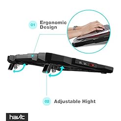HAVIT 5 Fans Laptop Cooling Pad for 14-17 Inch Laptop, Cooler Pad with LED Light, Dual USB 2.0 Ports, Adjustable Mount Stand