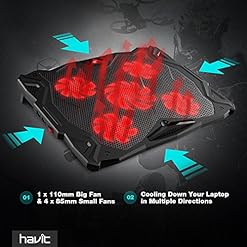 Quiet Working Fans: Five Fans (1 x big fan: 110mm, 4 x small fans: 85mm) with Eye-catching red LED light, optimize heat dissipation effect for 14″-17″ Laptops (The brighter the light is, the faster the speed will be)