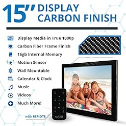 HD Digital Picture Frame Carbon Fiber – 1080p High Definition Electronic Photo & Video with 16GB Memory, Motion Sensor, Built-in Speakers & Remote Control – (Black)