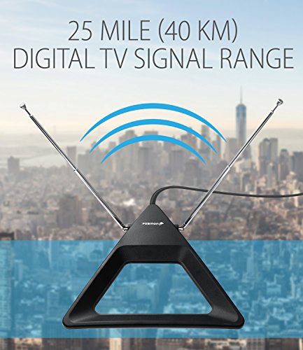 Fosmon’s HDTV antenna has retractable and adjustable dipoles/rabbit ears for optimal reception.