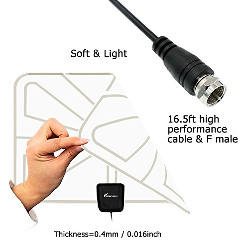 16.5FT LONG COAX CABLE — With extra long 16.5ft coaxial cable, You’ll be able to place the indoor antenna where the signal is the strongest. Makes indoor tv antenna easier to get the best reception, especially for customers whose televisions are reasonably far away from windows.