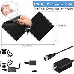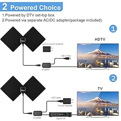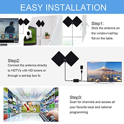 [EASY TO INSTALL WITH 3 STEPS]: The 13FT long cable makes it easy to place the HDTV antenna in the best reception spot in your house. Antenna can be powered either by an outlet or a TV’s USB port. Unwrap, plug it in, then scan the channels. A very easy and time-saving step, you’ll start to use this TV Antenna.