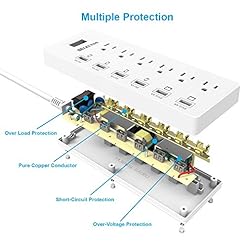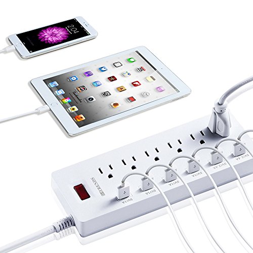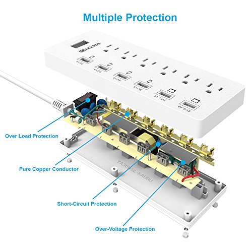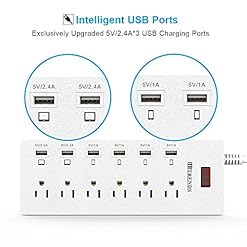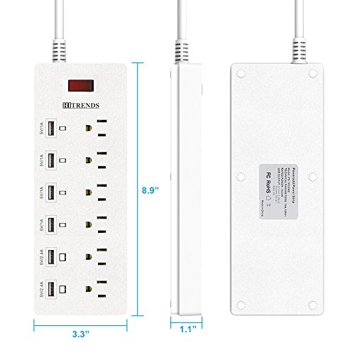 Hitrends 6-Outlet Home/Place of business surge protector with 6 USB charging ports features a up to date design and a right angle plug that fits easily into tight spaces. The 12 surge-secure outlets provide powerful protection for a variety of devices. Such as cell phones, tablets, laptops, PC bluetooth speakers, printers,audio or video sets,video gaming systems,and so on…
