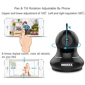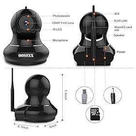 A well-designed Family camera reporting everything for you. You’ll be able to by discreet way to monitor (listen/speak to) children, elderly relatives or Nanny each where . This product is your ideal choice.The 1080P HD with Powerful night vision videos leave nothing unseen all the way through day and night. even watch as many as 16 cameras video at time. Specifications: Video Resolution: 2.0 Megapixel (1920×1080@30fps) Image sensor: 1/2.7″color CMOS sensor Video compression: H.264 Audio Compression: AAC Audio input/output:Two-way audio (built-in microphone and speaker) Lens: 3.6mm Min.Illumination: 0.05Lux/F1.2(Color), 0Lux/F1.2(IR on) Angle of View: About 80° Number of Infra-Red LEDs: 10 pcs Night Vision Distance: Up to 50ft Onvif: NO PTZ Horizontal: 350°,Vertical:100° IR Cut Filter: YES Ethernet: RJ45 x 1 ( 10M/100M );WiFi(IEEE802.11b/g/n) Operating Power: DC5V Storage: Micro SD Card(up to 256GB) Operating Temperature: -4 °F – 140 °F Indoor/Out of doors: Indoor Dimension (L x W x H): 5.5x5x5.5 inch Packet List: – 1 OOSSXX Pan&Tilt WiFi IP Camera 1080P – 1 Power Adapter (DC 5V) – 1 Ceiling/Wall Mounting Bracket – 2 Mounting Screws & Plugs – 1 Quick Start Guide