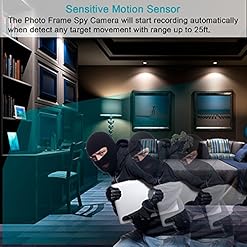 UNIQUE CONCEALED HOME SECURITY CAMERA: Highly hidden built-in lens to match the photo frame as a home decoration,almost undetectable unless go through it carefully. Built-in battery and no lines design allow you change it from bookshelf to desk or wall freely.