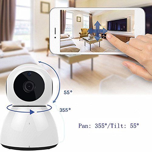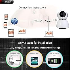 ► 1080P HIGH-DEFINITION, 112°WIDE-ANGLE ADVANCED GLASS LENS combined with 355° horizontal & 55° vertical rotation range create a complete 360° coverage. Advanced night vision with infrared LED beads extend the viewing distance to 48 feet in pitch dark with out a light pollution, so your baby or pet might not be disturbed by LED