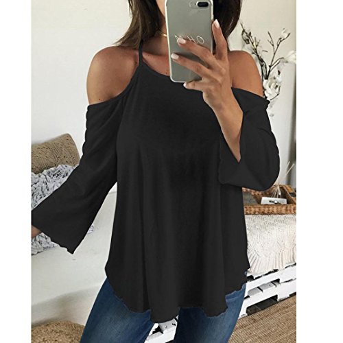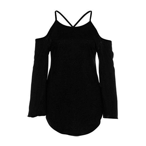 Elogoog T-Shirt Girls Sexy Off Shoulder Blouse Spaghetti Strap Long Sleeve Backless Casual Tops