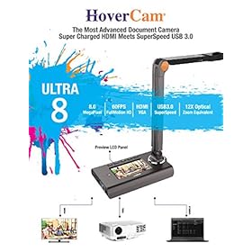 Ultra 8 is the HoverCam document camera you’ll use without a pc because it has HDMI and VGA outputs. Or, you can also connect it to the computer the usage of a SuperSpeed USB 3.0 cable. Ultra 8 even includes an LCD preview monitor (so you never wish to turn your back to see what’s showing on the big screen) and the LCD screen allows touch screen keep an eye on with your finger tips. Ultra 8 has a 8MP resolution and 60 frames/sec speed over HDMI – and 30 frames/second speed over USB. Use it for presentations, instruction and as an HD 1080p webcam. It even records full-motion HD directly to an SD card without a pc, or record HD no-lag video over USB directly to the computer, making it easier to share. 8.0 MegaPixel sensor provides amazing clarity and vibrant picture color – ideal for teaching and presentations. For higher education and corporate accounts it includes a RS232 serial port for keep an eye on by leading keep an eye on systems. Possibly the most efficient document camera ever built, and all this for only $449. Calling it a “document camera” doesn’t do it justice. It does so a lot more.