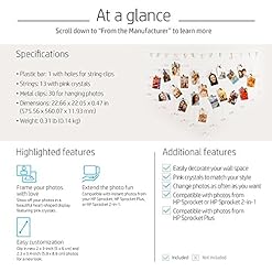 HP Sprocket Heart-Shaped Photo Display with Pink Crystals and Clips (2HS27A)