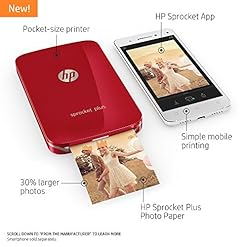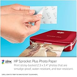 HP Sprocket Plus Instant Photo Printer, Print 30% Larger Photos on 2.3×3.4 Sticky-Backed Paper