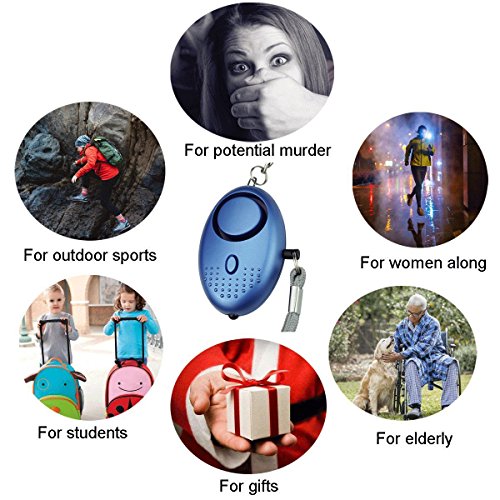 – This personal alarm keychain is mini-sized and portable, may also be attached on backpack, ladies bag, belt loops, schoolbag, suitcases.