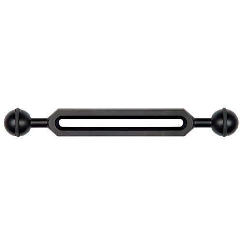 Use the Ikelite Slotted 7” Ball Arm Section 1” with 7” length to extend your strobe or video light arm for underwater imaging. A longer arm enables different lighting angles and positions and lets you reduce backscatter, glare, and hard shadows. An optional clamp will assist you to attach the extension to any standard 1” ball arm, including those from Ikelite, TLC, Ultralight, and Nauticam. Moreover, the slotted design of the extension enables the connection of an optional lightweight accessory within the middle. When used with Ikelite’s Sliding Ball Mount, this accessory can move up and down the length of the arm. The ball mounts/joints measure 1” in diameter, and have a groove and o-ring to forestall slipping for a greater hold with less force. The extension and balls are Constructed from aluminium that has been treated with a hard type III anodized finish for resistance to corrosion.