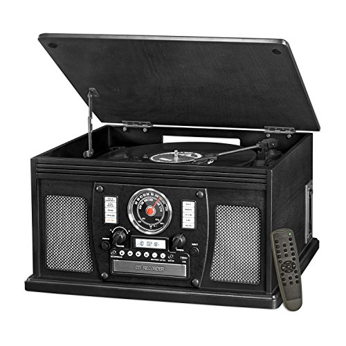 3-Speed Turntable (33 1/3, 45, 78 RPM), CD Player and Recorder, Cassette Player, AM/FM Radio, and Built-In Stereo Speakers