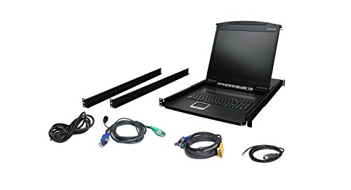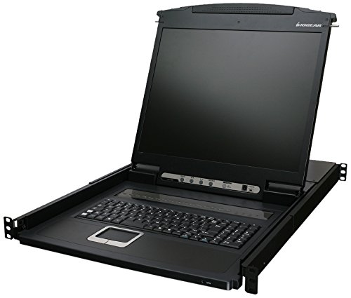 Integrated 8-port KVM console featuring a 19″ TFT LCD active matrix monitor, keyboard and touchpad