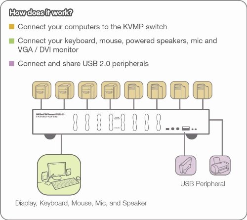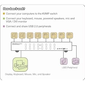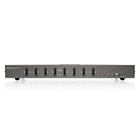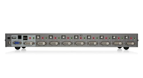 One USB console controls eight DVI or VGA computers, supports both digital (DVI), analog (DVI) video and analog (VGA)