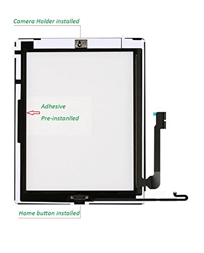 For iPad 4 Glass Screen Digitizer Complete Full Assembly with Home Button, Camera Bracket,Frame Bzezel and Adhesive Preinstalled