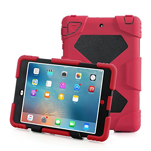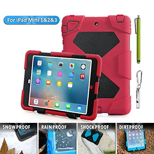 iPad Mini Case, ACEGUARDER Full Body Protective Cover Kids Shock Proof Case with Built-in Screen Protector & Adjustable Kickstand for Apple iPad Mini 1 2 3 (Red/Black)
