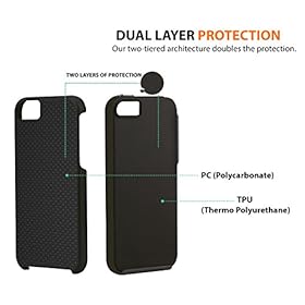 Dual Layer Protection: an inner shock absorbtion TPU layer and a scratchproof outer PC cover keeps your iPhone 5 / iPhone SE protected and secure
