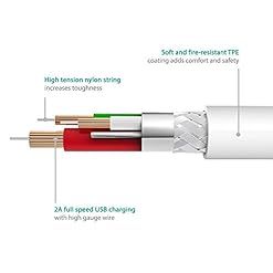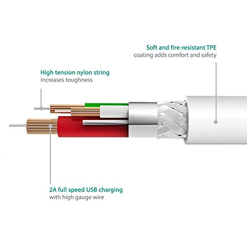 2.4A Fast Charging: Measuring 3.5mm in diameter, the wire is large enough to accommodate the heavy demands of 2.4A charging