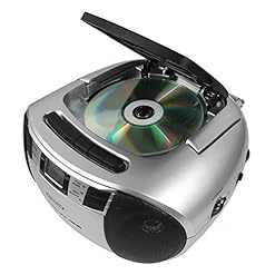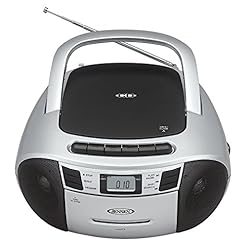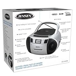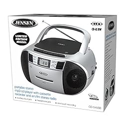 Jensen CD-545SB Top-Loading CD/MP3 Cassette Player and Recorder Boombox Home Audio AM/FM Radio, Aux, Headphone Jack, Black/Silver Portable Stereo Compact Disc Cassette Recorder with AM/FM Radio Introducing the CD-545 Portable Stereo Compact Disc & MP3 Cassette Recorder with AM/FM Radio from JENSEN®. Take along your favorite tunes with a feature-wealthy CD player that incorporates both a cassette recorder and an AM/FM stereo radio. This unit includes a top-loading CD player, which is compatible with both CD-R and CD-RW compact discs so it provides versatile playback options for store bought or custom made CDs. This portable stereo music system has a built-in care for, which is smooth and comfortable for simple transport. Revel in making recordings with a simple one-touch Serve as or use the rotary telescopic antenna to get clear AM/FM radio for listening or recording. A stereo headphone jack and auxiliary input jack for connecting your iPod®, MP3, or other digital audio players provide much more functionality. This device uses same old 120VAC/60Hz power or can operate on six (6) C batteries (not included).