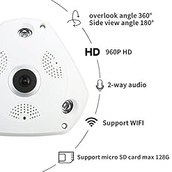 960P HD video format: 1280 × 1024 HD camcorder. Day and night clear image quality (with infrared sensor). Wireless 360 degree panorama, no blind spots