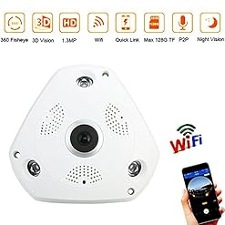 Wifi 3D VR IP camera, monitoring range of about 100 square meters , to succeed in day and night monitoring,you’ll access it from anywhere. Night vision and two-way audio: HD night vision effects, recording, infrared sensor, wide angle.