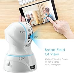 Broad Field of View: Wide 62 Degree Viewing Angle, 350 Degree x 100 degree covers every corner of your home, 1 Super IR LED for Night Vision Up to 20ft, IR cut for capture love images, One million pixel high definition. Supports remotely control the camera rotating to watch every corner indoor with MIPC View App.