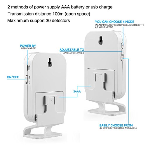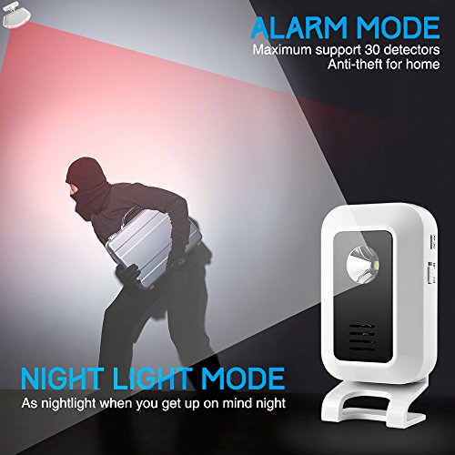 WIDE APPLICATION:Use as a welcome doorbell chime at daytime and a burglar alarm system at night. Can be utilized at doors, driveways, walking paths at your house,home, apartment, office, hotel, store and many other places.