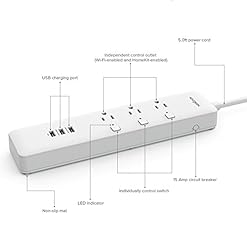 The three HomeKit-enabled AC power outlets are one by one switchable and Wi-Fi enabled.