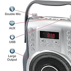 KORAMZI Karaoke Portable Rechargeable Boombox Bluetooth,USB,SD, FM Radio, AUX in, 3.5 mm Audio Jack, Bluetooth Call Answering, Electric Guitar Audio Input, MIC Jack KS-200SI (Silver)