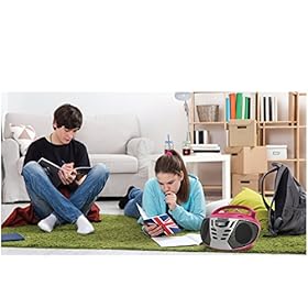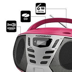 Koramzi CD55-PKS portable CD boombox Full Range Stereo Sound System has Best loading CD/MP3 player . The program can playback all digital audio CD, finalized digital audio CD-Recordable (CD-R) discs, finalized digital audio CD-Rewritable (CD-RW) discs and CD-DA format digital audio CD/CD-R/CD-RW discs. Programming tracks of disc are imaginable when playback is stopped. As much as 20 tracks for CD disc may also be stored within the memory in any order. You’ll play one track or all tracks at the disc time and again. For private listening, insert a 3.5mm headphone (now not included) into the HEADPHONE jack.